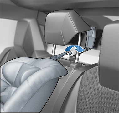 En el asiento central, pase una correa sencilla entre los postes del reposacabezas. Eleve el reposacabezas (consulte Reposacabezas) y pase la correa. Mantenga el reposacabezas en la posición elevada.
