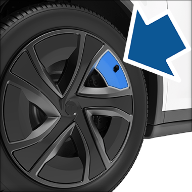 If you are installing new wheels or swapping them for different ones, update your vehicle's wheel configuration by touching . This allows Model X to learn the new wheels and provide more accurate status updates on your vehicle. Select a wheel from the drop down menu that matches the new wheels you plan to install on Model X. Selecting new wheels in the wheel configuration also changes the wheels that appear on your vehicle's avatar on the touchscreen.