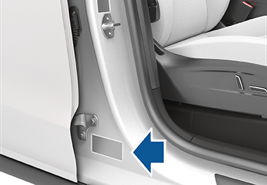 - Printed on the Product Plate, located on the door pillar and can be seen when the front passenger door is open.