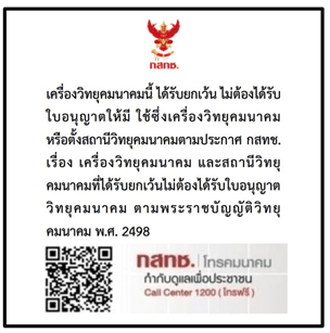 “เครื่องวิทยุคมนาคมนี้มีระดับการแผ่︎คลื่นแม่เหล็ก ไฟฟ้︎าสอดคล้︎องตาม มาตรฐานความปลอดภัยต︎อสุขภาพ ของมนุษย์︎จากการใช้︎เครื่องวิทยุคมนาคมที่คณะกรรมการ กิจการ โทรคมนาคมแห︎งชาติประกาศกําหนด”