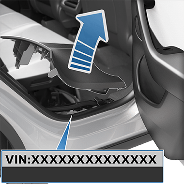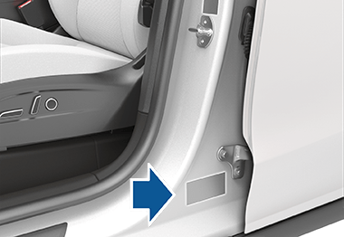 • Stampato sulla targhetta obbligatoria, ubicata sul montante della portiera. È visibile quando la portiera anteriore è aperta.