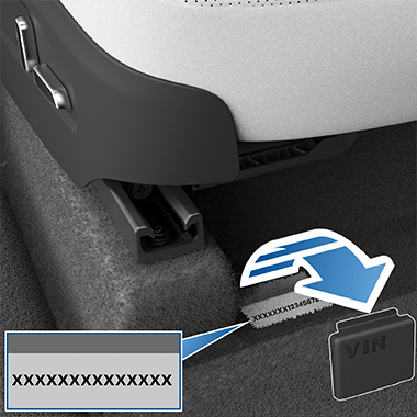 • Veicoli realizzati nella Gigafactory di Shanghai: Il VIN è stampato sul pianale ed è visibile spostando indietro il sedile anteriore destro e sollevando il tappetino.