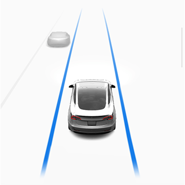 de rijstrookmarkeringen en de aanwezigheid van andere voertuigen en objecten, om Model 3 op intelligente wijze op zijn rijstrook te houden (zie Automatisch sturen).OpmerkingAutomatisch sturen is een BÈTA-functie.