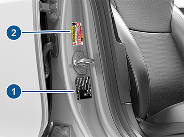打开副驾位车门可以看到产品铭牌和轮胎信息标签。