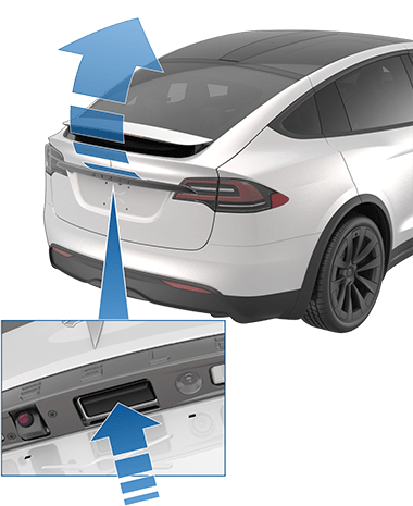 Model X doit être déverrouillé(e) ou détecter une clé pour que vous puissiez utiliser l'interrupteur pour ouvrir le hayon.