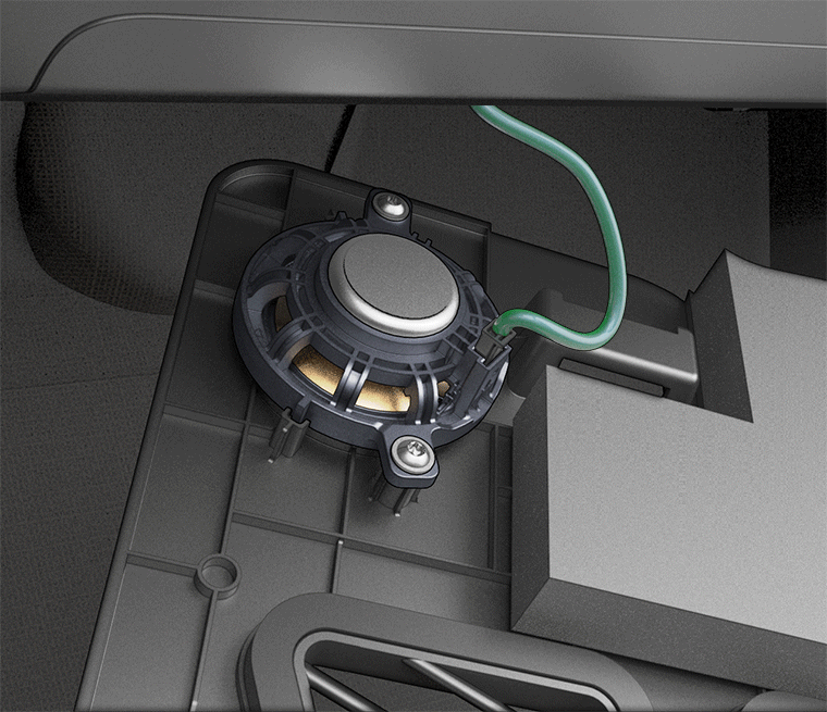 - Winkeln Sie für den Lautsprecher den fahrzeugseitigen Steckverbinder vorsichtig an, damit sich die kleine Lasche vom Loch im Steckverbinder an der Fußraumabdeckung löst, während Sie den Steckverbinder abziehen.